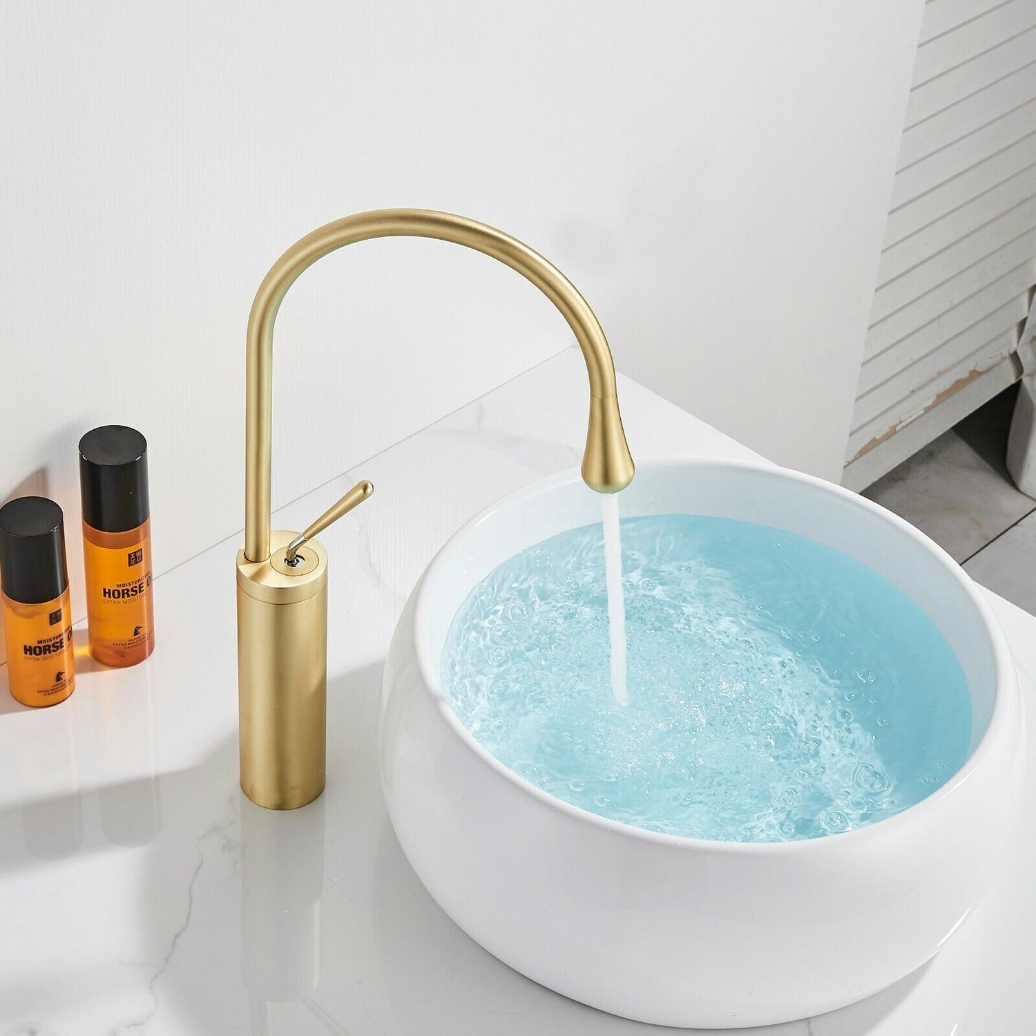 Durch den hohen Auslauf eignet sich Lydia perfekt für freistehende Waschbecken.