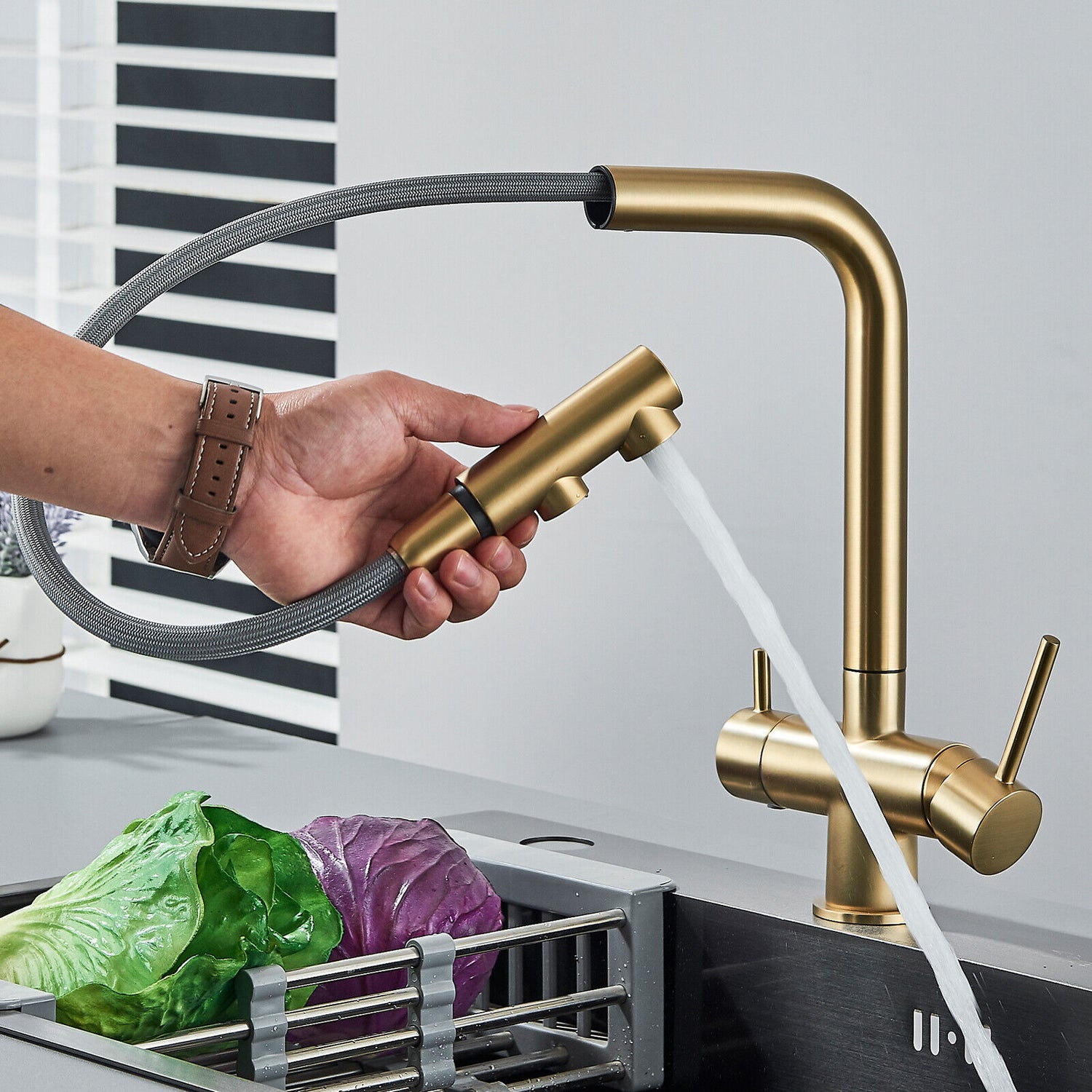 Ausziehbare 3 Wege Küchenarmatur "Felix" - Gold