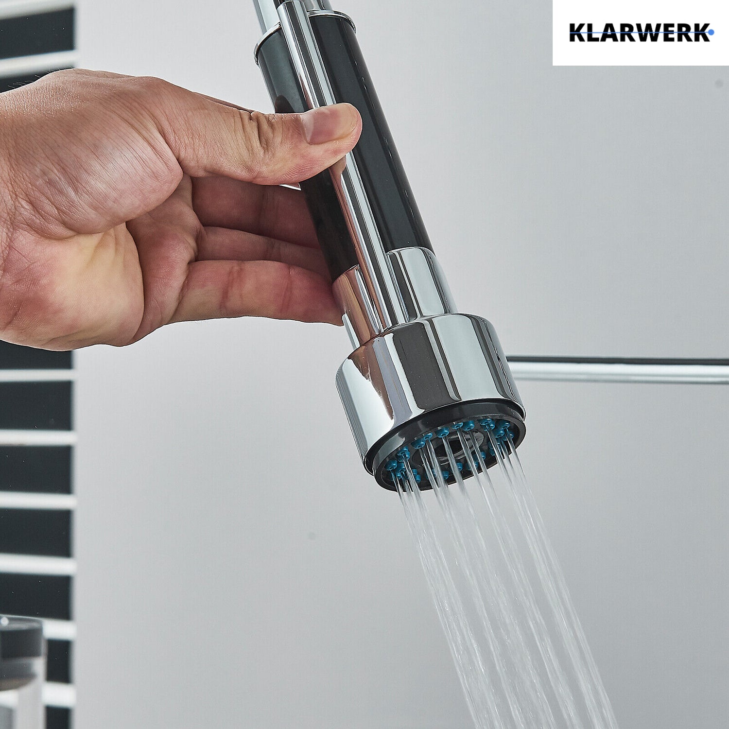 Beide Auslässe sind 360° drehbar, die Hauptbrause lässt sich flexibel schwenken.
