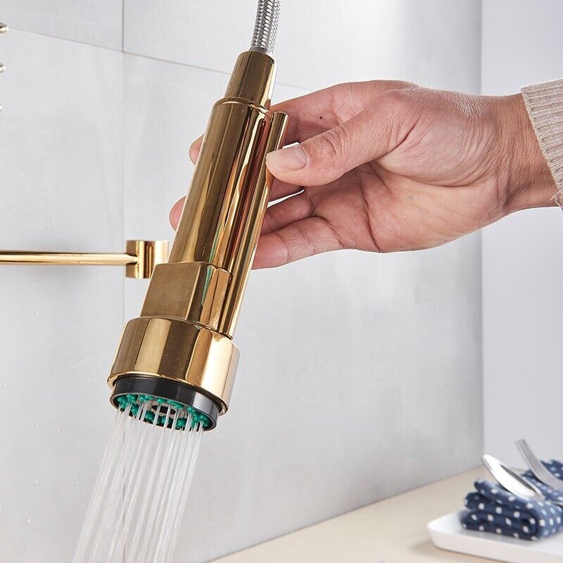 Beide Auslässe sind 360° drehbar, die Hauptbrause lässt sich flexibel schwenken.