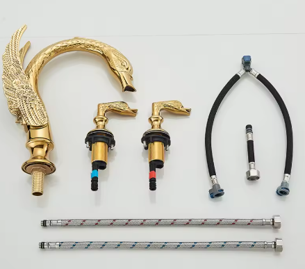 Große Badarmatur Schwan "Adrian" - Gold 3 Anschlüsse