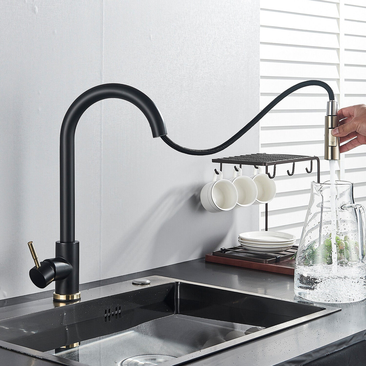 Ausziehbare Küchenarmatur "Jana" - Schwarz/Gold
